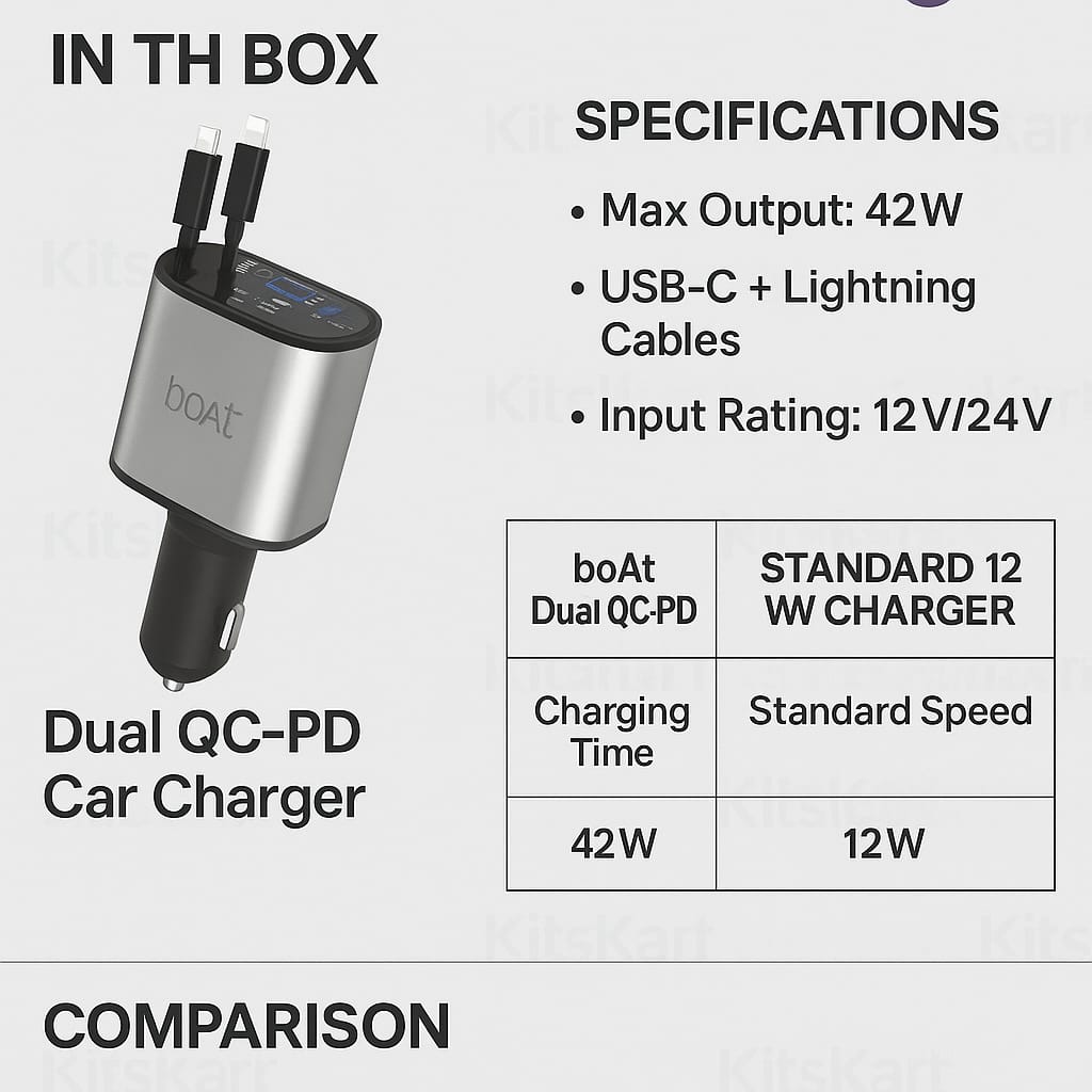 boAt ഡ്യുവൽ QC-PD റാപ്പിഡ് കാർ ചാർജർ
